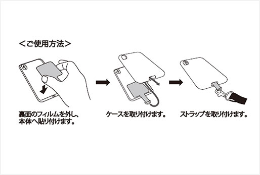 お手持ちのスマホケースに簡単取付できる、便利なショルダーストラップです。