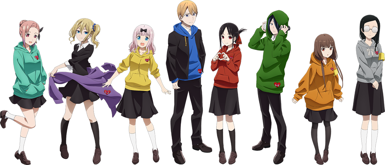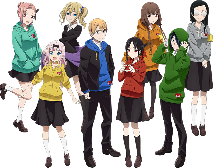 四宮かぐや、白銀御行、藤原千花、石上 優、伊井野 ミコ、早坂 愛、大仏こばち、子安つばめ