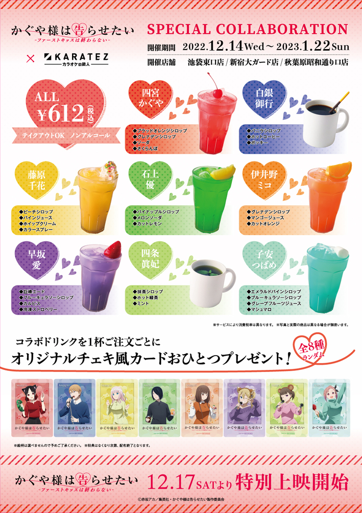 本日12/14(水)より、かぐや様×カラオケの鉄人コラボが開催されます!