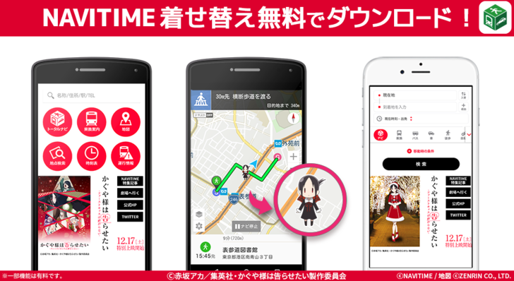 【タイアップ】『NAVITIME』アプリにかぐや様の着せ替えが新登場!