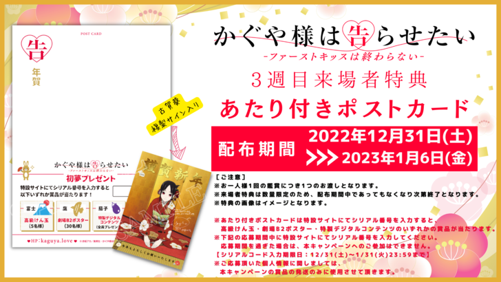 3週目来場者特典解禁! 初夢プレゼント! あたり付きポストカードの配布が決定!